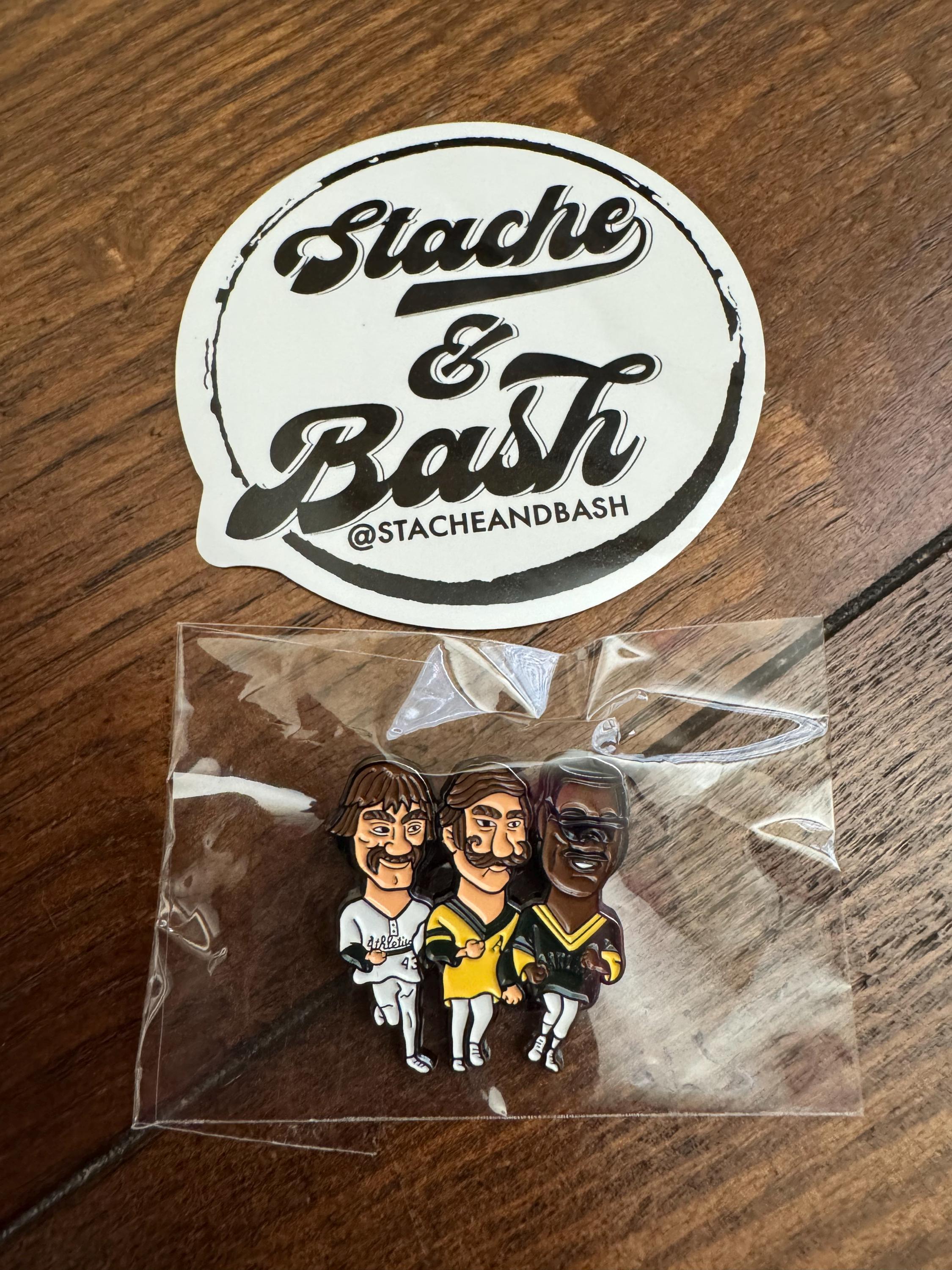 This one-of-a-kind pin is for the true Oakland fans. Gives you flashback to many games at the Colosseum with the guys running. I’m a second generation A’s fan and proudly, raising a third generation A’s fans. I got this for a gift for my niece. She was the first woman to run in a bobble head at an A’s game. Perfect gift to remember it. Thank you so much, extremely appreciated and you’ve got a return customer.